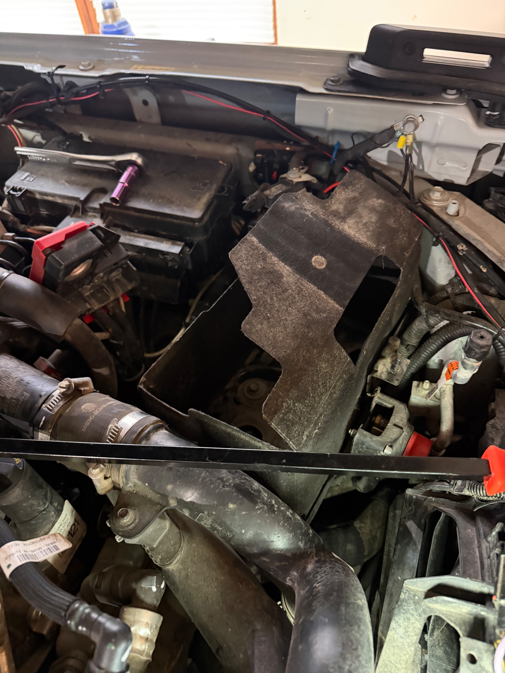 I checked online for the process, to make sure I understood anything specific to the Bronco for replacement (different manufacturers and models can require specific process steps). Tools required- 10, 12 and 13mm(1/2”) sockets. Pry bar for the battery clamps and a battery post cleaner.